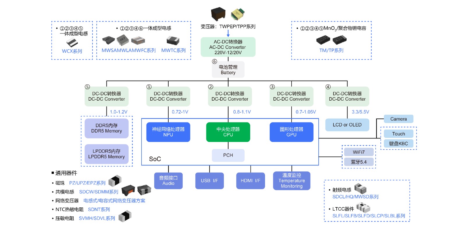 ÔÚ AI PC µÄ¹©µçÄ£¿éÖУ¬¹¦Âʵç¸Ð·¢»Ó×Ų»¿ÉÌæ´úµÄ¹Ø¼ü×÷Óᣵç¸ÐÊǹ©µçÄ£¿éµÄºËÐÄ×é¼þ£¬Ö÷Òª¸ºÔðÏò GPU¡¢CPU¡¢NPU µÈ¸ßÐÔÄÜоƬÌṩǰ¶Ë¹©µç¡£ËüÔÚµç·ÖÐͨ¹ýµç´Å¸ÐÓ¦ÔÀí´¢´æºÍÊÍ·ÅÄÜÁ¿£¬Æðµ½´¢ÄÜ¡¢Â˲¨µÈ×÷Ó㬴ӶøÈ·±£Ð¾Æ¬»ñµÃÎȶ¨µÄµçÔ´£¬±£ÕÏÆäÕý³£¹¤×÷¡£µç¸ÐÔÚ AI PC ¹©µçϵͳÖоÍÏñÒ»¸ö¾«×¼µÄÄÜÔ´µ÷¿ØÖÐÐÄ£¬ÎªÕû¸öϵͳµÄÎȶ¨ÔËÐÐÌṩ¼áʵµÄµçÁ¦Ö§³Ö¡£