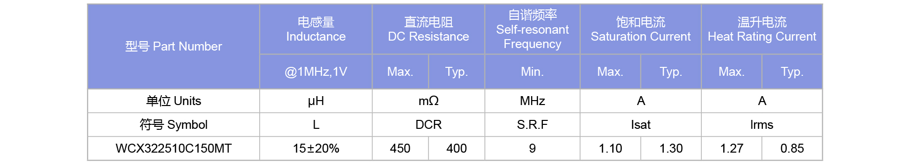 ͼ 10£ºWCX322510C150MT ¹æ¸ñ²ÎÊý
